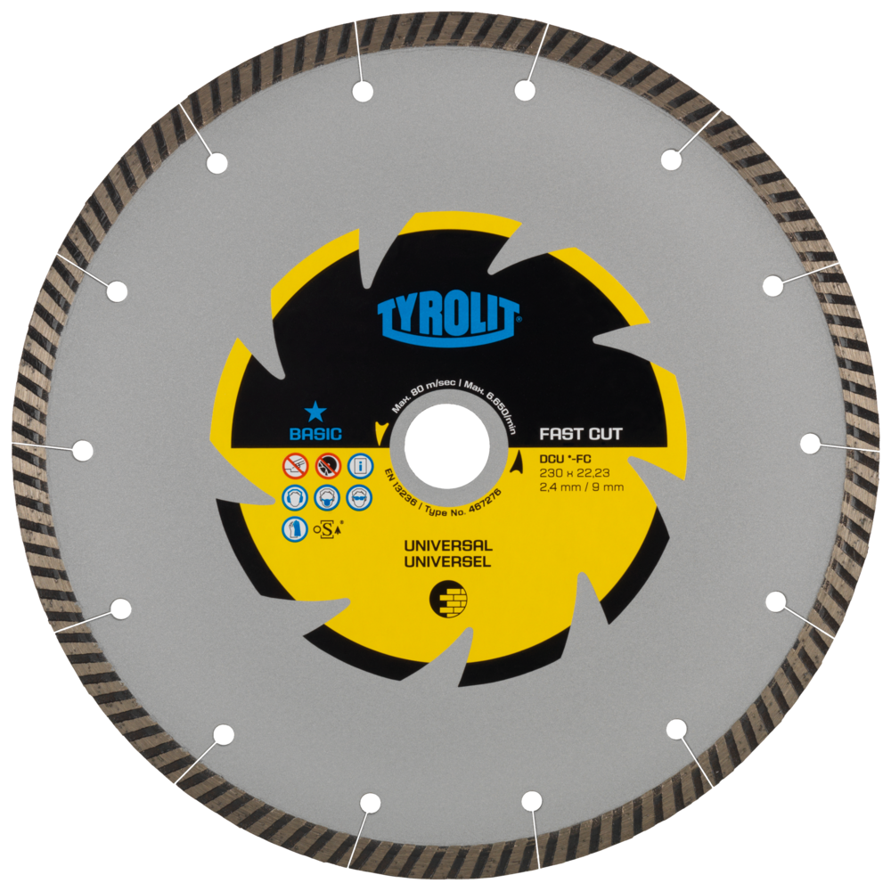 Discul are forma C3R, segmentii au o inaltime de la 7mm la 9mm si grosimi intre 2mm si 2.4mm, cu diametre exterioare intre 105mm si 230mm pentru polizor unghiular si segmentii au o inaltime de 10mm si grosimea 3mm, cu diametre exterioare intre 300mm si 350mm pentru masina de taiat pe benzina.